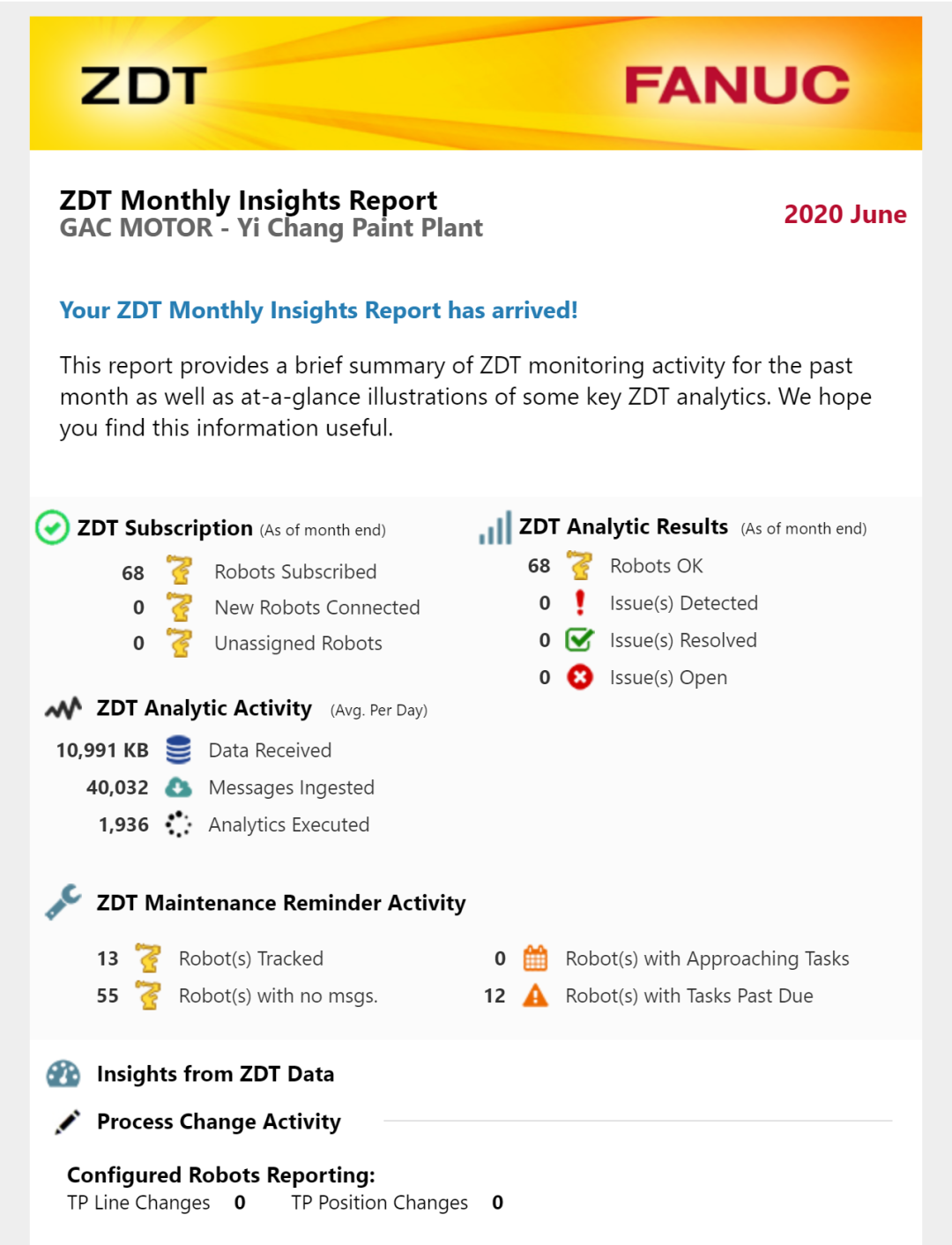 云端遠(yuǎn)程服務(wù)系統(tǒng):采用了FANUC 云端遠(yuǎn)程服務(wù)系統(tǒng)ZDT,ZDT對(duì)柯林斯的機(jī)器人潛在問(wèn)題進(jìn)行提前預(yù)警,從而避免機(jī)器人在生產(chǎn)中的意外停機(jī)發(fā)生。同時(shí),ZDT的預(yù)防性維護(hù)功能,幫助可以用戶準(zhǔn)確掌握每臺(tái)機(jī)器人的維護(hù)保養(yǎng)周期。