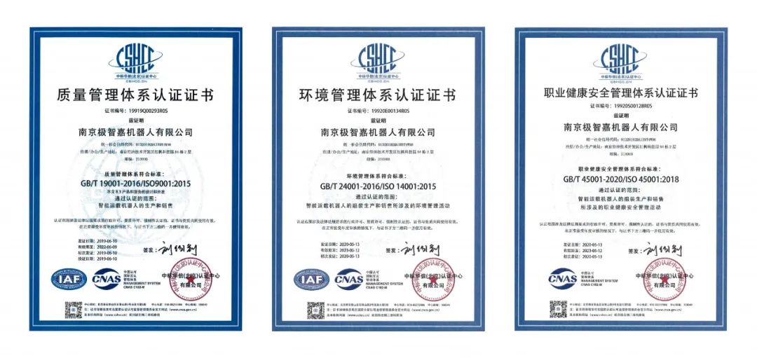今年6月,南京智慧工廠已獲得ISO國(guó)際標(biāo)準(zhǔn)化組織中最重要的QES三大管理體系認(rèn)證,包括ISO9001質(zhì)量管理,ISO14001環(huán)境管理和ISO45001職業(yè)健康安全管理。ISO體系三大認(rèn)證的英文對(duì)極智嘉南京智慧工廠在產(chǎn)品質(zhì)量,環(huán)境保護(hù)狀語從句:職業(yè)健康安全方面的高度肯定,充分印證了極智嘉堅(jiān)持高品質(zhì),追求極致的理念,更是南京智慧工廠對(duì)未來堅(jiān)持高標(biāo)準(zhǔn),精細(xì)化管理的承諾。