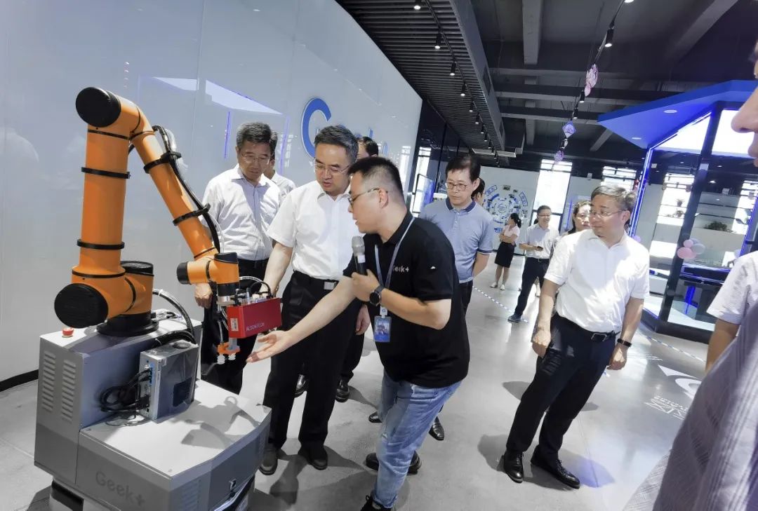 龍翔主任一行深入極智嘉南京智慧工廠,詳細(xì)了解極智嘉產(chǎn)業(yè)發(fā)展,生產(chǎn)經(jīng)營(yíng),技術(shù)創(chuàng)新等情況。極智嘉南京智慧工廠制造總監(jiān)張舉明詳細(xì)介紹了公司的發(fā)展歷程,產(chǎn)品種類及商業(yè)落地規(guī)模。龍翔主任一行重點(diǎn)了解極智嘉最新推出的智能消毒機(jī)器人,替代產(chǎn)品應(yīng)用前景表示了極大的認(rèn)可。