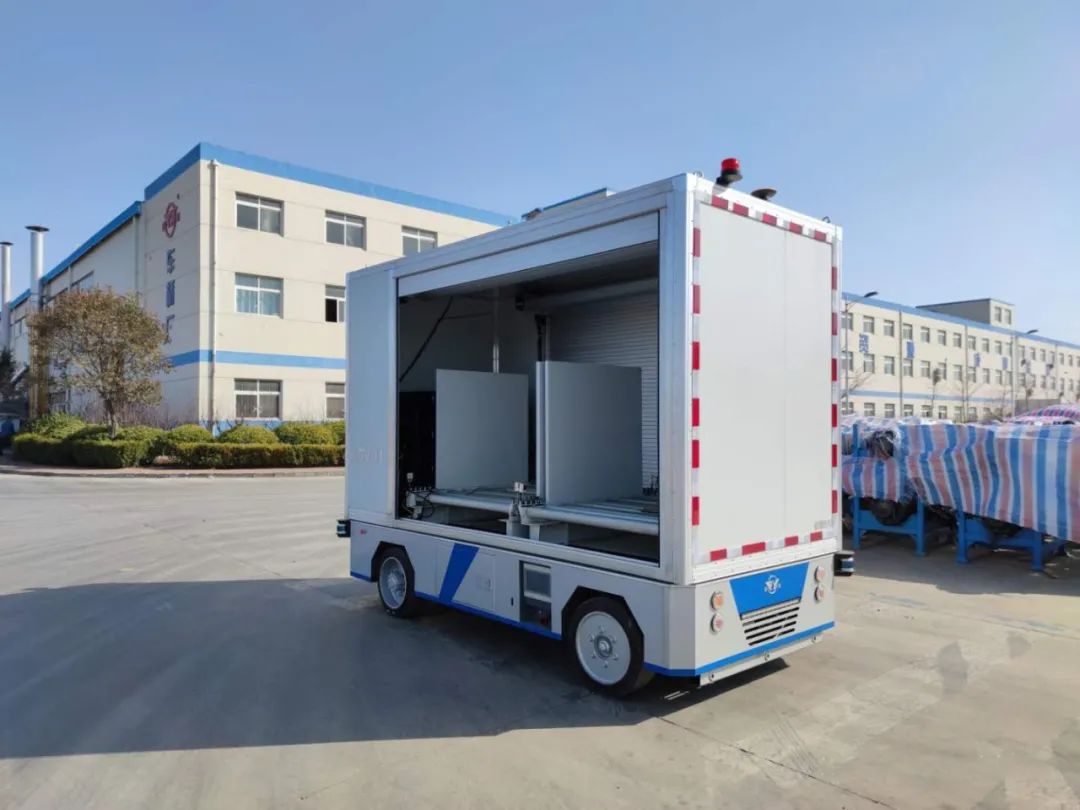醫(yī)藥行業(yè):在山東某制藥公司,蓬翔公司AGV負責其室外物流自動化運輸,車輛采用全封閉結構,滿足全天候運行,車輛內(nèi)部配備車載輥道,可與地面輥道進行對接,實現(xiàn)裝卸貨物的自動化。
