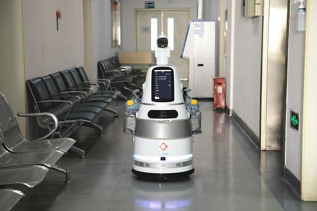 優(yōu)必選AIMBOT(智巡士)機(jī)器人在深圳三院發(fā)熱門診消毒殺菌(央廣網(wǎng)發(fā) 受訪者供圖)