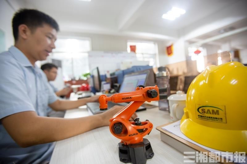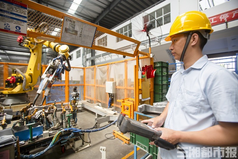 “之前都是人工焊接,我現(xiàn)在只要把毛坯料準備好,把程序編好,給一個指令,機器人得到信號,根據(jù)視覺傳感器,就能對16個焊點進行焊接……”8月26日,毛逢春站在工作臺前,向三湘都市報記者解釋著自己的操作。