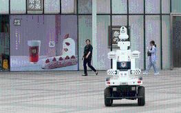 5G+人工智能巡邏機(jī)器人高度1.6米,搭載6個(gè)高清攝像頭,可以進(jìn)行360度的旋轉(zhuǎn)和上下120度俯仰,實(shí)現(xiàn)全方位安防巡邏,同時(shí)它還具備紅外溫度感知功能,即使夜間也能開(kāi)展視頻巡邏,機(jī)身還設(shè)置了“報(bào)警”按鈕,遇到緊急情況的市民可以通過(guò)該按鈕實(shí)現(xiàn)一鍵報(bào)警。