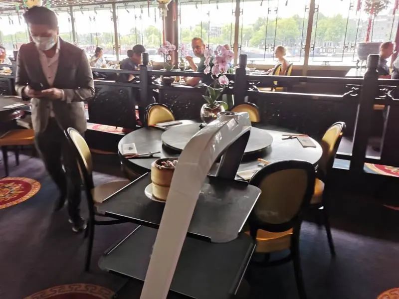 考慮到荷蘭疫情間歇性反復,人力成本高昂,海上皇宮的掌門人知道是時候必須要做點什么改變現(xiàn)狀了。他了解到大量餐廳在疫情期間的應對之策,發(fā)現(xiàn)不管是將餐桌擺放的相隔甚遠、還是由服務員推餐車,客人自己拿取、甚至是為每桌客人隔出玻璃房,都是為了人與人之間的無接觸和安全。