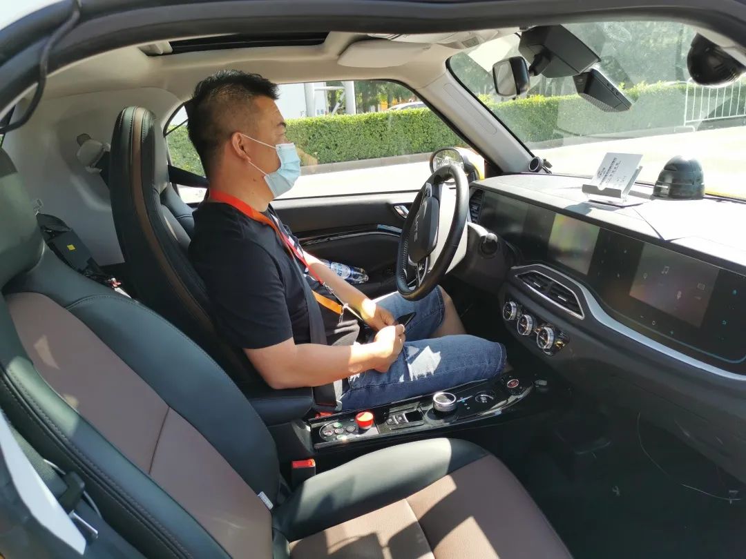 安全員:對(duì)。我的手只用放在方向盤,以防萬一,以防出現(xiàn)緊急情況,我會(huì)第一時(shí)間接管,包括我的腳,也沒有碰剎車踏板和油門。