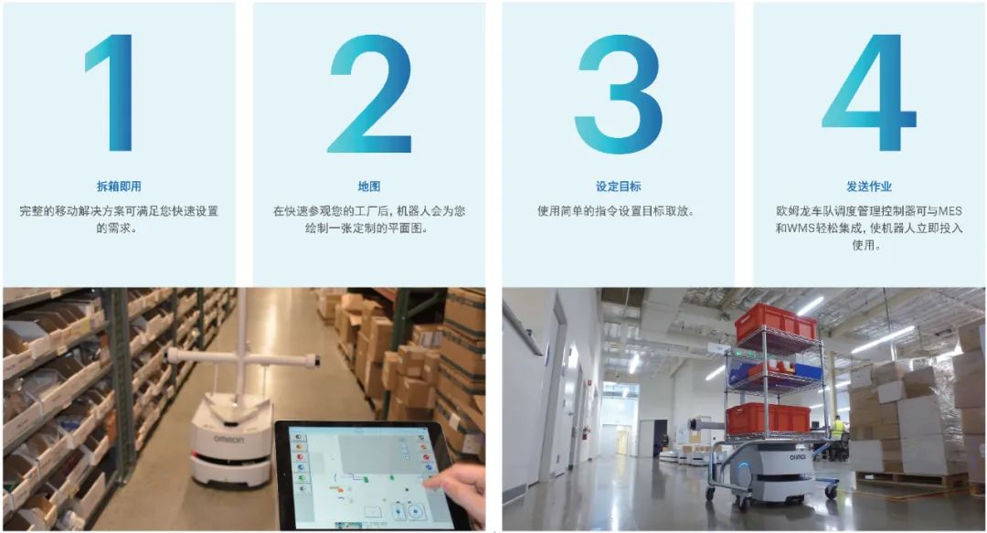 除了強(qiáng)大的性能之外,歐姆龍的移動(dòng)機(jī)器人還易于安裝和運(yùn)行,無(wú)需任何構(gòu)建(如安裝磁條),只需進(jìn)行極少編程。此外,軟件可與您的其他系統(tǒng)集成,以便在最短時(shí)間內(nèi)啟動(dòng)和運(yùn)行解決方案。