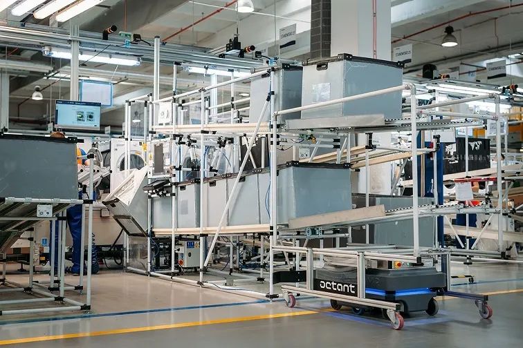 分析:MiR采用全球領(lǐng)先的SLAM定位,能夠自主規(guī)劃路徑,實(shí)時(shí)避障,安全系數(shù)高,無(wú)需磁條以及二維碼等裝置進(jìn)行輔助定位,且MiR體型體型小巧,通過(guò)狹窄通道的能力強(qiáng),高效的調(diào)度系統(tǒng)能夠靈活調(diào)度不同機(jī)器人在狹窄通道內(nèi)移動(dòng)工作。