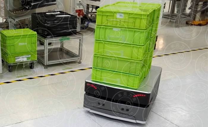 公司由原先人工或輸送線生產(chǎn)方式升級為柔性、靈活、高效的AGV工位運送。米克力美AGV小車作為產(chǎn)線輸送配用平臺與輸送鏈條板線融合,自動上下料,AGV調(diào)度系統(tǒng)安排AGV小車自動地在各生產(chǎn)及檢驗工位間搬送,實現(xiàn)了拼裝檢驗無線通信模塊中的好幾個工位自動化,節(jié)省了人工成本。