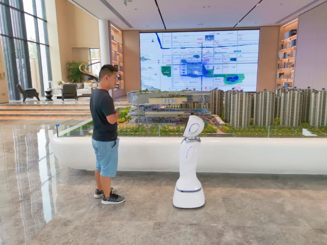 為緩解置業(yè)顧問帶看壓力,科沃斯商用機(jī)器人小悅化身“智能接待員”,協(xié)助案場(chǎng)的迎賓接待、指路帶看等工作。