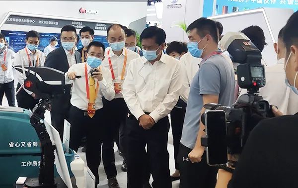 (工作人員淄博市市委書記一行講解ANDI-安防機(jī)器人)
