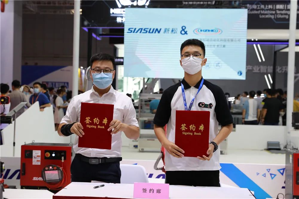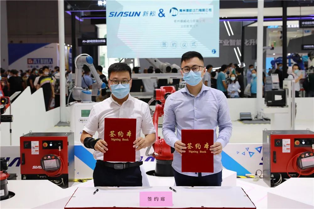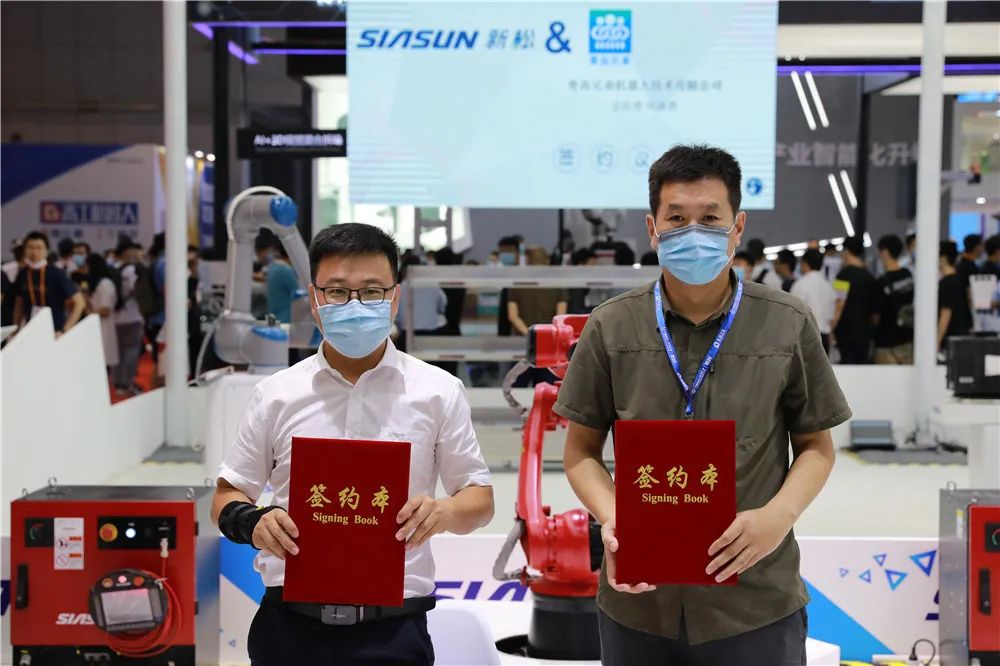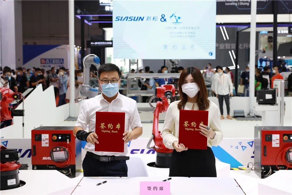 發(fā)布會現(xiàn)場,天津新松總裁助理呂忠偉代表新松公司與19家企業(yè)簽署“火弧”機器人訂購合同,達成訂購總計近200套。