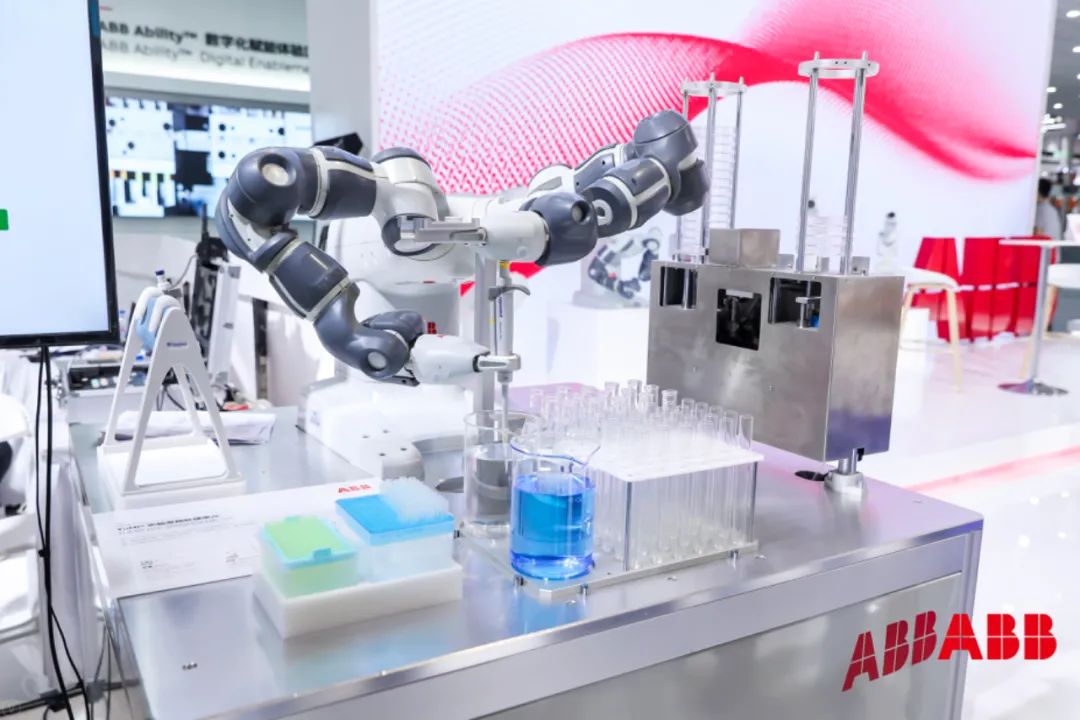 ABB展示了一套針對(duì)醫(yī)院的機(jī)器人藥房自動(dòng)化系統(tǒng),以及用于醫(yī)療實(shí)驗(yàn)室的協(xié)作工作站,以展示其對(duì)未來(lái)醫(yī)院的愿景。在協(xié)作工作站,一臺(tái)雙臂YuMi?能夠與實(shí)驗(yàn)室人員協(xié)同工作,完成移液、分液、混液、微生物培養(yǎng)等任務(wù)。