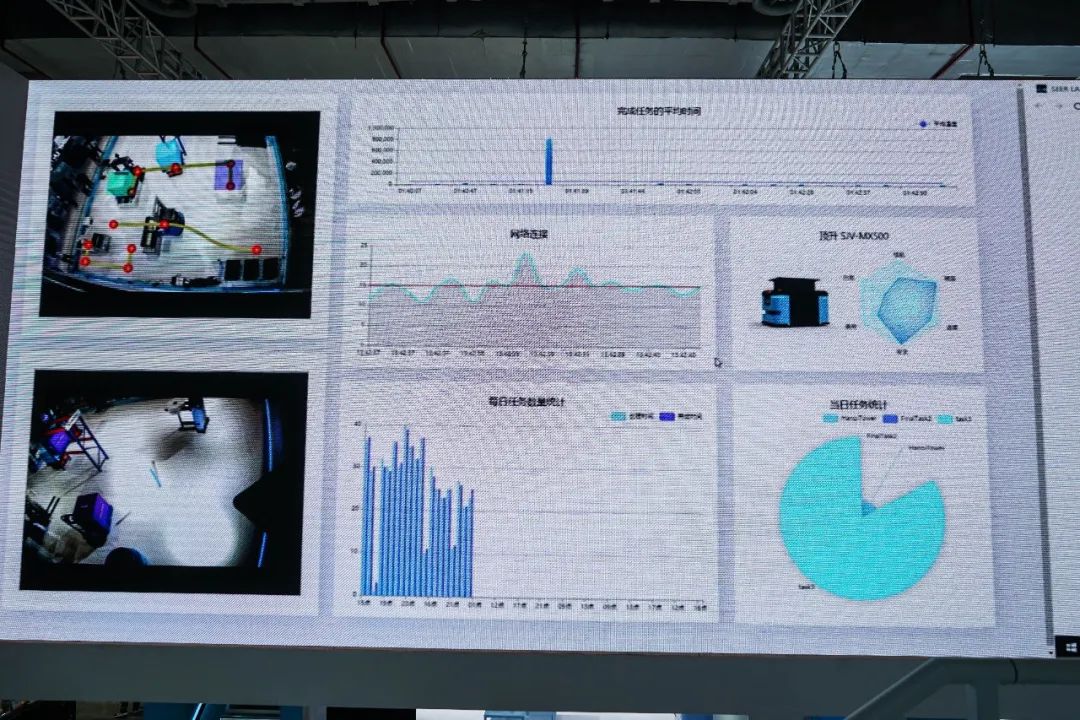 再抬眼至展臺最炸眼的大屏,所有機器人的形態(tài)和動作也完美地數(shù)字化呈現(xiàn)于此,觀眾不僅能看到實物動態(tài),也能在數(shù)字公屏上感受到仙工智能企業(yè)數(shù)字化中臺帶來的數(shù)字孿生的魅力...
