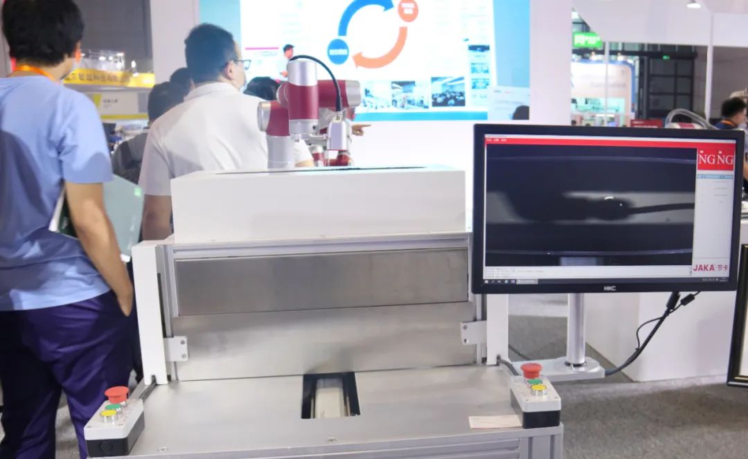 3D視覺分揀:將3D相機裝在機器人末端, 對雜亂無章的物體進行三維定位和抓取,幫助用戶解決實際的3D視覺需求。其中應(yīng)用在手機領(lǐng)域PCB檢測、搬運、新能源行業(yè)后包裝段鋰電池工作站、汽車行業(yè)光導(dǎo)條檢測、食品搬運碼垛、移動復(fù)合機器人等吸引參觀者的目光。除此之外,主從聯(lián)動、力控拖拽和軌跡復(fù)現(xiàn)、針對復(fù)雜曲面的軌跡示教的離線編程體驗、節(jié)卡機器人自主研發(fā)的JAKA視覺防護系統(tǒng),以及對商業(yè)服務(wù)具有重要意義的機器人攝影、無人咖啡機也是展會流量擔當。