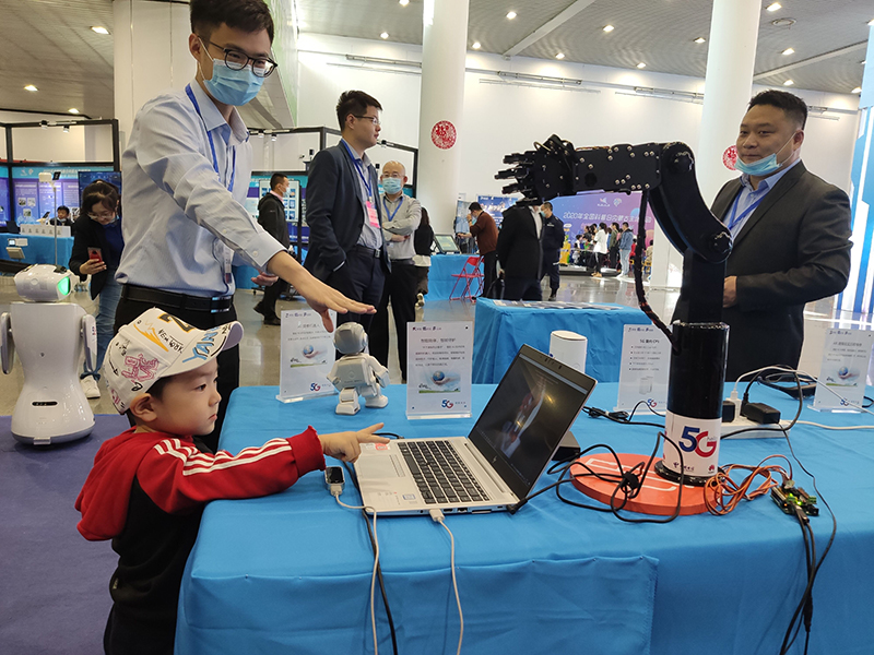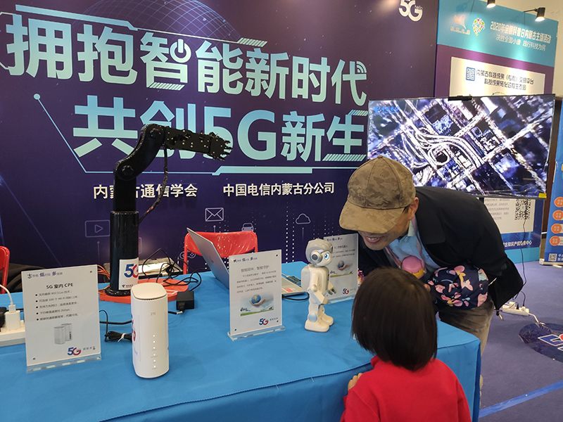 中國電信內(nèi)蒙古分公司工作人員介紹說,5G賦能未來,中國電信內(nèi)蒙古分公司將本次參展主題定為“擁抱智能新時(shí)代,共創(chuàng)5G新生活”是因?yàn)?G具有大寬帶、低時(shí)延、多連接等特點(diǎn),未來將全面改變?nèi)藗兊纳睢,F(xiàn)場看到的猜拳機(jī)器人正是借助5G超低時(shí)延特點(diǎn),才能快速捕捉拳頭動(dòng)作并急速作出反應(yīng)。