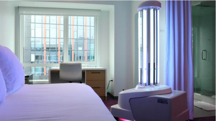 9月初,位于波士頓海港區(qū)的擁有326間客艙的波士頓Yotel旅館宣布將實(shí)施UVD機(jī)器人技術(shù)。從2020年9月15日開始,Yotel內(nèi)的部分客艙在空置時將由UVD機(jī)器人進(jìn)行清潔,而所有高接觸公共場所也在關(guān)閉時進(jìn)行消毒。