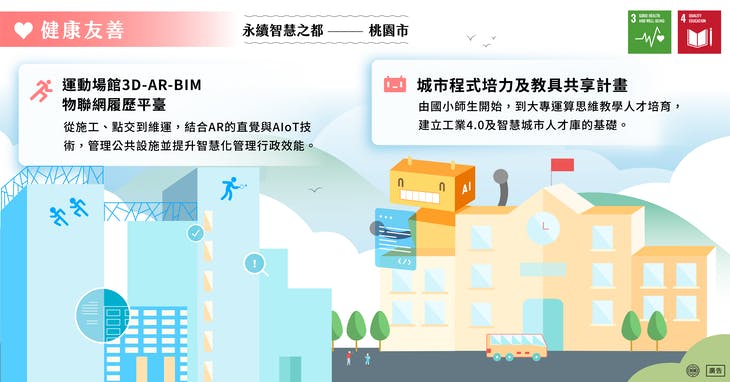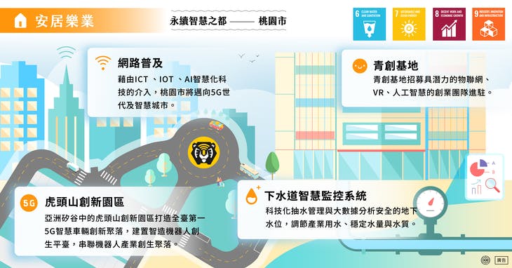 智慧韌性:桃園市政府將智慧科技應用到防災,并積極推動跨局處計畫的低碳綠色城市計畫,追求環(huán)境永續(xù)及強化城市韌性。