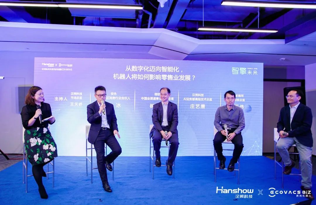 在專家圓桌論壇環(huán)節(jié),安永大中華區(qū)消費(fèi)行業(yè)合伙人錢冰先生、微軟(中國)全渠道事業(yè)部創(chuàng)新技術(shù)總經(jīng)理崔宏禹先生、漢朔科技AI業(yè)務(wù)部高級(jí)技術(shù)總監(jiān)莊藝唐先生、科沃斯商用機(jī)器人產(chǎn)品高級(jí)總監(jiān)趙亞偉先生,針對(duì)“從數(shù)字化邁向智能化,機(jī)器人將如何影響零售業(yè)發(fā)展”、“零售行業(yè)機(jī)器人大規(guī)模商用需要解決哪些關(guān)鍵問題”、“是技術(shù)引領(lǐng)零售變革,還是零售演進(jìn)推動(dòng)技術(shù)發(fā)展”等熱點(diǎn)話題展開深入討論,并分享了各自在零售行業(yè)的數(shù)字化轉(zhuǎn)型服務(wù)與創(chuàng)新實(shí)踐經(jīng)驗(yàn)。