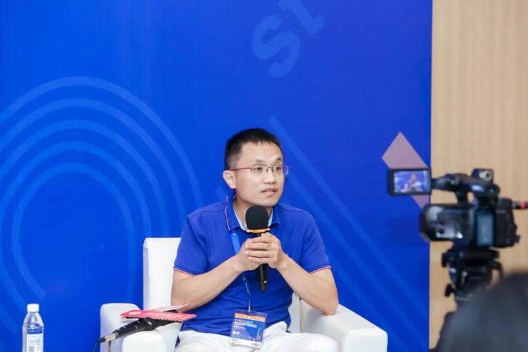 ▲ 諾亞醫(yī)院物流機(jī)器人董事長(zhǎng)蔣化冰接受媒體采訪