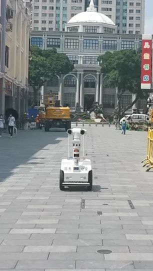 走在北京路上,可以看到警用巡邏機(jī)器人自動巡邏的身影。