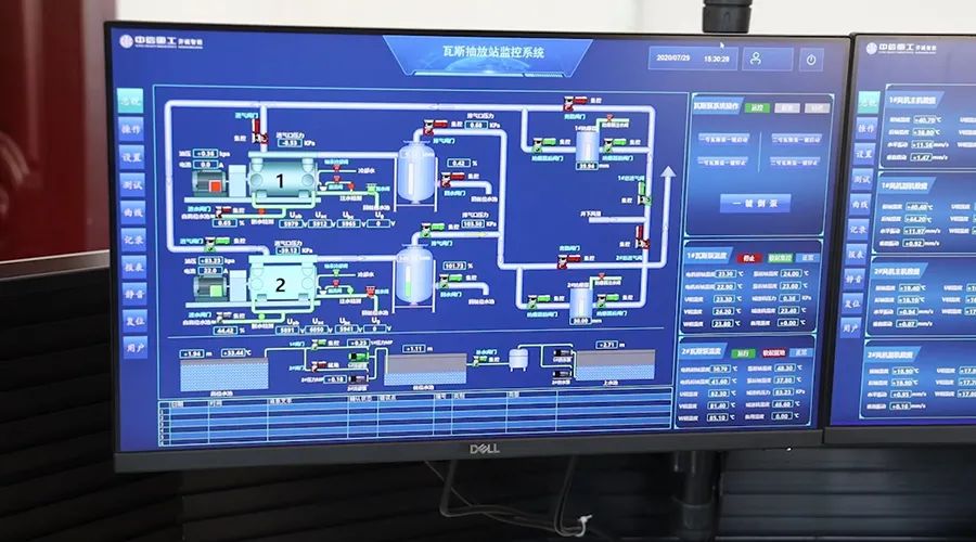 在安靜明亮的調(diào)度監(jiān)測集控中心,工控機上的“一鍵倒機”按鈕,能迅速完成風機的啟動、倒機功能,操作簡單方便?!斑^去要實現(xiàn)風機不停風倒機,至少需要2名工人配合,從運行風機切換到備用風機經(jīng)過8個操作流程才能完成,不僅操作繁瑣,而且費時費力?!闭{(diào)度中心副主任馮玉飛介紹道,“如今,一個值班人員坐在調(diào)度室里輕點一下電腦就完成了這項工作。不僅如此,風機出現(xiàn)故障時系統(tǒng)還能夠自動完成倒機功能,既迅速又方便”。
