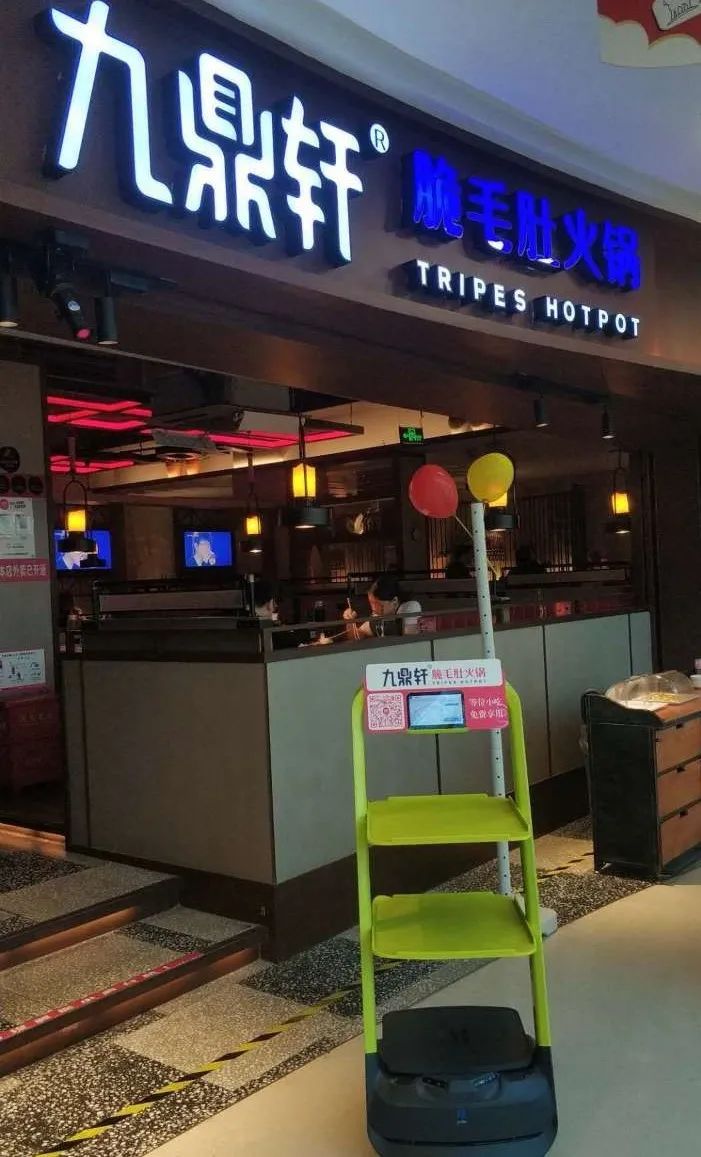 九鼎軒脆毛肚火鍋揚(yáng)州五彩世界店,近期就為自家店鋪引進(jìn)了一個(gè)擁有“吸睛”和“留存顧客”的幫手!——普渡商用服務(wù)機(jī)器人——“歡樂(lè)送”。
