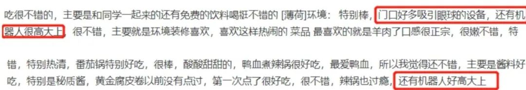 從這一點(diǎn)來(lái)看,九鼎軒五彩世界店為留住顧客,吸引顧客而使用機(jī)器人巡航,深藏著小心機(jī)與大智慧。據(jù)大眾點(diǎn)評(píng)網(wǎng)的點(diǎn)評(píng)反饋,有了機(jī)器人的九鼎軒五彩世界店,是商圈內(nèi)共11家火鍋餐廳中最火爆、最具人氣的一家。