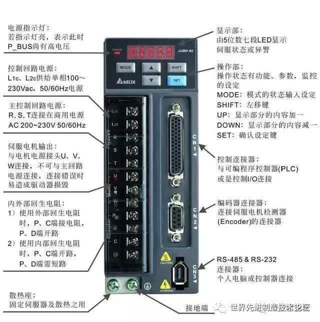 伺服驅(qū)動器主要有控制回路電源、主控制回路電源、伺服輸出電源、控制器輸入CN1、編碼器接口CN2、連接起CN3??刂苹芈冯娫词菃蜗郃C電源,輸入電源可單相、三相,但是必須是220v,就是說三相輸入時(shí),咱們的三相電源必須經(jīng)過變壓器變壓才能接,對于功率較小的驅(qū)動器,可單相直接驅(qū)動,單相接法必須接R、S端子。伺服電機(jī)輸出U、V、W切記千萬不能與主電路電源連接,有可能燒毀驅(qū)動器。CN1端口主要用于上位機(jī)控制器的連接,提供輸入、輸出、編碼器ABZ三相輸出、各種監(jiān)控信號的模擬量輸出。