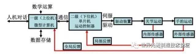 傳感器將各個關(guān)節(jié)的運(yùn)動輸出信號反饋回伺服控制級計算機(jī)形成局部閉環(huán)控制,達(dá)到精確的控制機(jī)器人在空間的運(yùn)動。