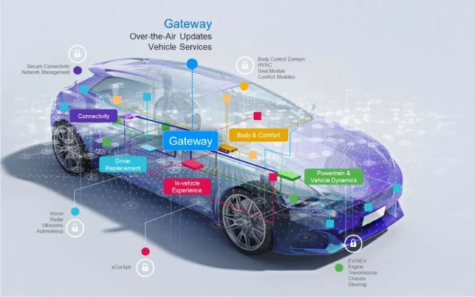 車輛制造商(OEM)積極致力于研發(fā)新功能,以期從競爭中脫穎而出。自動(dòng)駕駛需要安全連接和功能域ECU之間的高帶寬通信,因此要想實(shí)現(xiàn)自動(dòng)駕駛,網(wǎng)關(guān)必不可少。 網(wǎng)關(guān)作為車載網(wǎng)絡(luò)的核心,也非常適合用來支持全車范圍的應(yīng)用,如無線(OTA)更新和車輛數(shù)據(jù)分析,以及與OEM服務(wù)器(云)的安全通信。