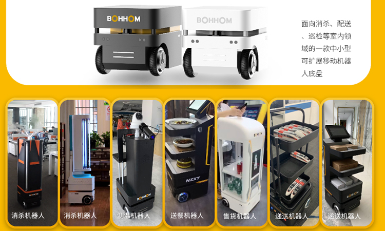“博時(shí)捷”智能移動(dòng)底盤是面向消殺、配送、巡檢等室內(nèi)應(yīng)用領(lǐng)域的一款中小型可擴(kuò)展的室內(nèi)機(jī)器人底盤,他配有多種擴(kuò)展接口,可搭載不同的上層應(yīng)用,助力企業(yè)實(shí)現(xiàn)快速、低成本的機(jī)器人產(chǎn)品開發(fā)和大批量落地生產(chǎn)。