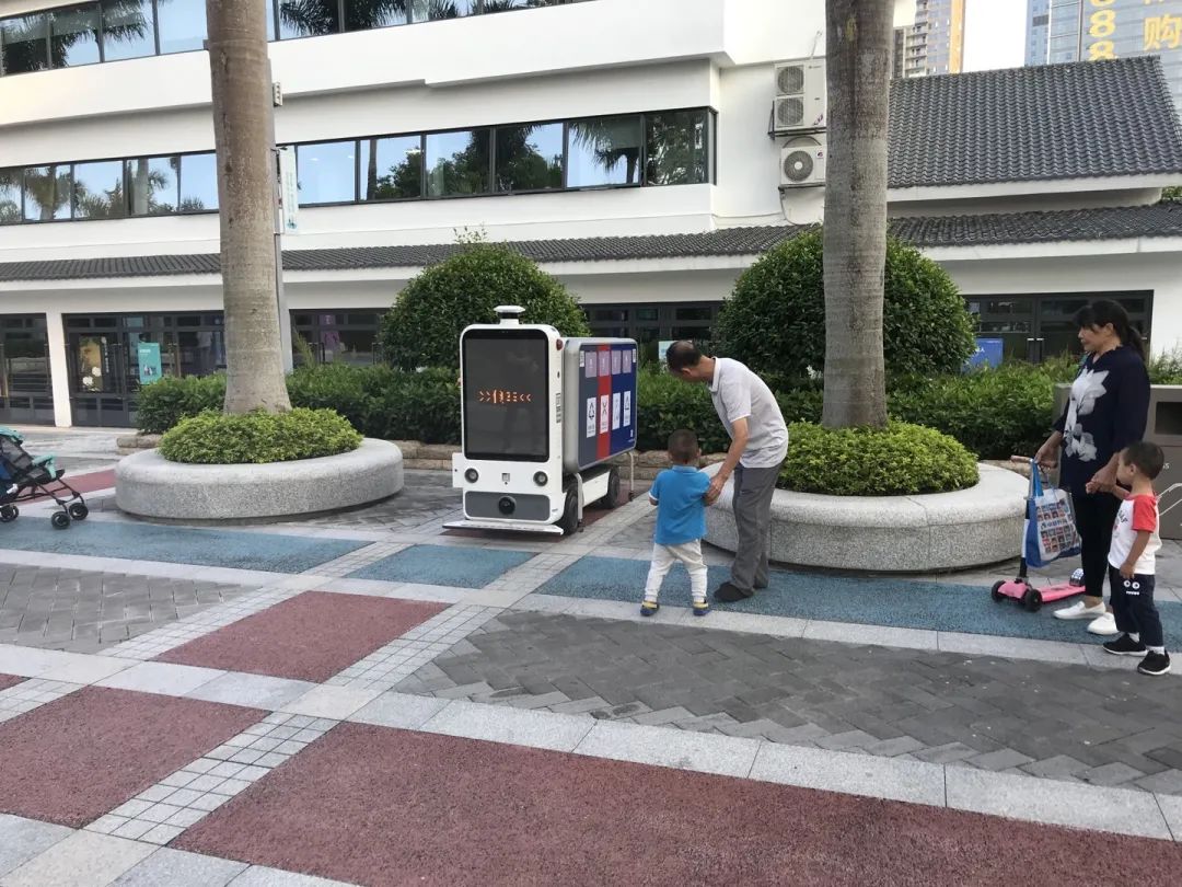 陽光無人車的垃圾轉(zhuǎn)運車從前端分類收集,助力城市垃圾分類和回收。