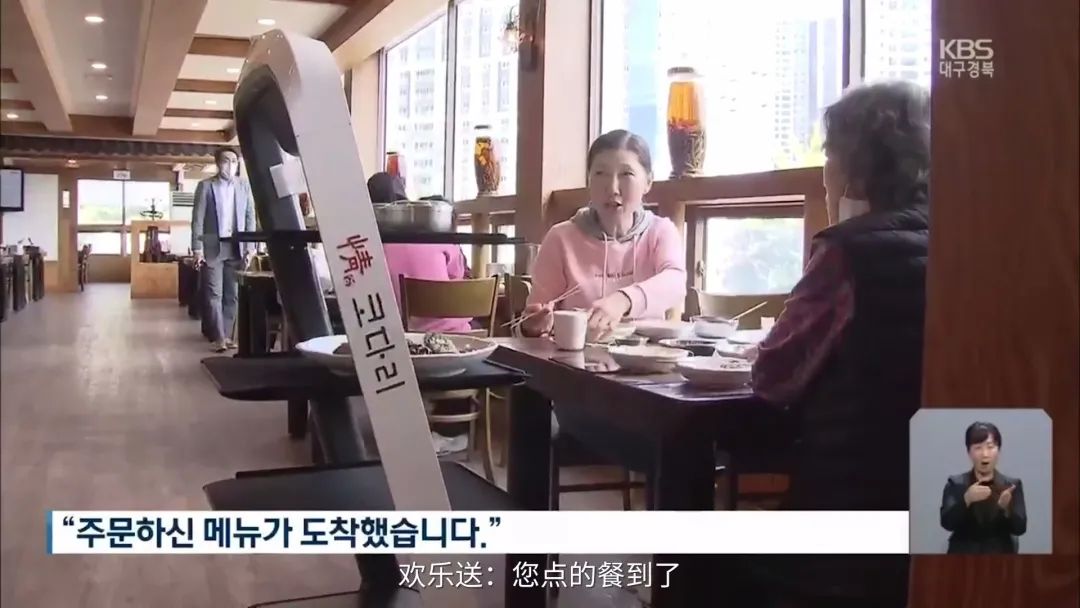 韓國某家餐廳里,機器人正在代替職員搬運食物。