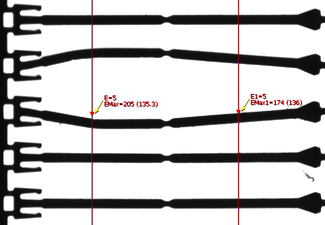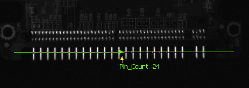 邊緣點(diǎn)的數(shù)量,以及相鄰兩個邊緣點(diǎn)之間的距離,判斷電子插針是否相互平行,合格與否