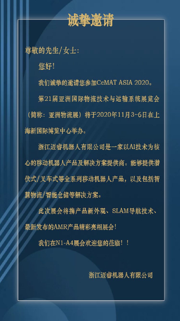 展會邀請」邁睿機器人特邀您參加上海CeMAT ASIA 2020