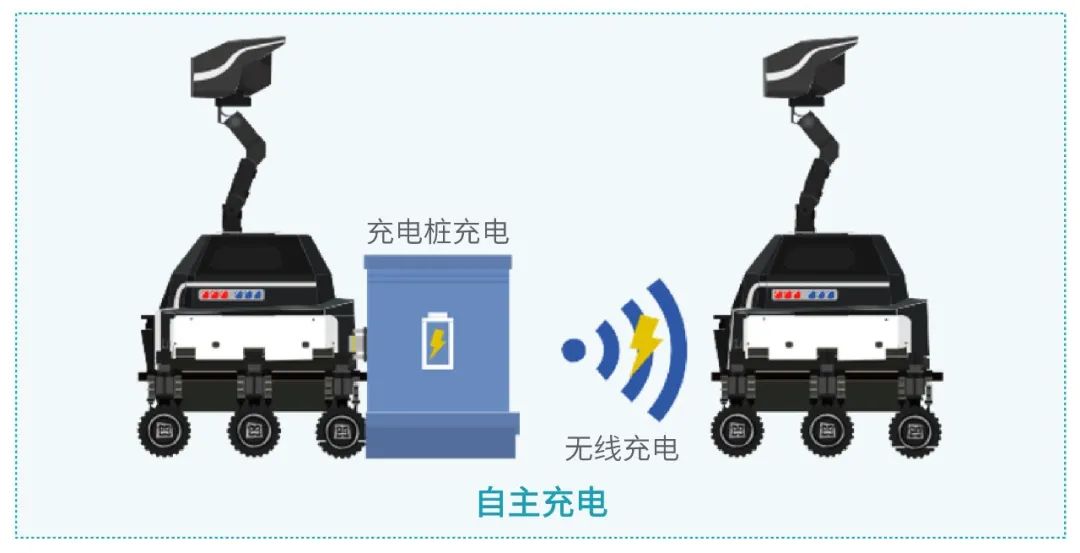 智能自主充電系統(tǒng),提供充電樁和無(wú)線充電兩種模式。