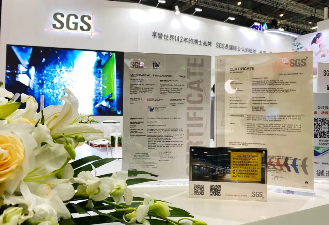 ??禉C(jī)器人AMR安全控制器德國(guó)DAKKS和中國(guó)CNAS雙資質(zhì)SIL3功能安全認(rèn)證證書(shū)于第三屆進(jìn)博會(huì)SGS展臺(tái)