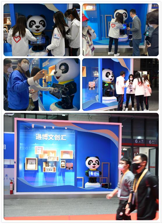 當(dāng)你進(jìn)入展會(huì)現(xiàn)場(chǎng),遠(yuǎn)遠(yuǎn)的就會(huì)被憨態(tài)可掬的國(guó)寶形象——“進(jìn)寶”所吸引,并且在共享休息室、展位預(yù)訂辦公室、洽談會(huì)客廳等主要功能點(diǎn)位也會(huì)看到它們忙碌的身影。進(jìn)寶主要在人流密集處提供雙語咨詢、位置引導(dǎo)等服務(wù)。