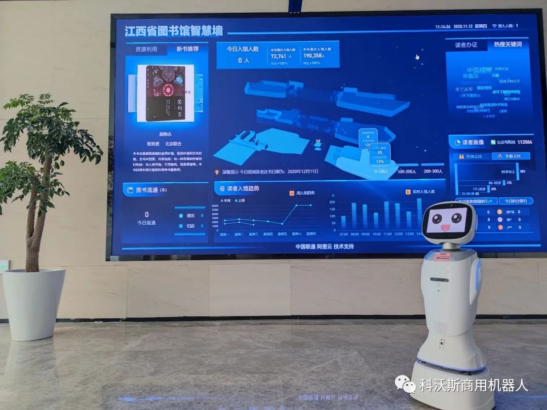 科沃斯商用圖書館機(jī)器人進(jìn)駐江西省圖書館新館后,為讀者提供了全天候自助服務(wù)。除引導(dǎo)讀者借還書,還開展了迎賓接待、業(yè)務(wù)咨詢、智能推薦、精準(zhǔn)營銷等一系列服務(wù)工作,極大地幫助館內(nèi)工作人員緩解了以往為瑣事“疲于奔命”的工作狀態(tài),讓圖書館員基于機(jī)器人反饋的數(shù)據(jù)順勢轉(zhuǎn)型成“悅”讀引導(dǎo)員、閱讀服務(wù)顧問等角色。