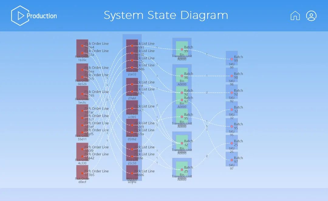 針對(duì)物流教育中抽象概念的教學(xué),HyperCube平臺(tái)采用大量視覺元素的呈現(xiàn),借助數(shù)據(jù)狀態(tài)與過程的可視化,利用符號(hào)、按鈕、界面的顏色與形狀,建立并強(qiáng)化認(rèn)知理解,大大降低了使用者對(duì)復(fù)雜系統(tǒng)、抽象概念的學(xué)習(xí)門檻。