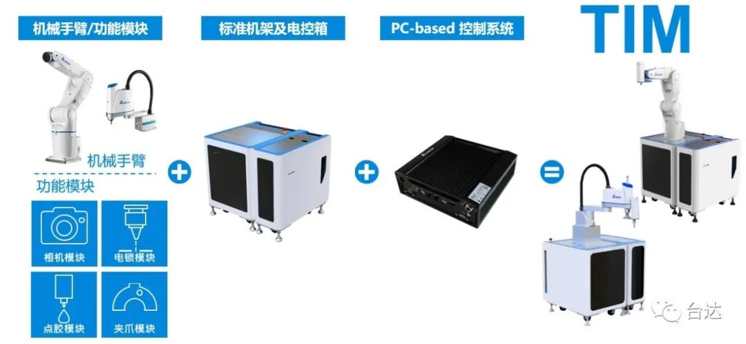臺(tái)達(dá)將自動(dòng)化機(jī)臺(tái),拆分為搭載機(jī)械手臂的機(jī)架以及不同應(yīng)用的功能型機(jī)架,用戶可以根據(jù)產(chǎn)線需求,將不同的機(jī)架進(jìn)行結(jié)合。同時(shí),藉由配置在每個(gè)機(jī)架內(nèi)的標(biāo)準(zhǔn)電控箱,搭配標(biāo)準(zhǔn)化連接線,能有效縮短機(jī)架之間的串接作業(yè)時(shí)間。通過(guò)便捷地調(diào)整機(jī)臺(tái)功能即可滿足多樣化訂單需求,減少產(chǎn)線調(diào)整步驟并加快切換速度,讓機(jī)臺(tái)得以盡快投入生產(chǎn)作業(yè),提升換線制造的效率。