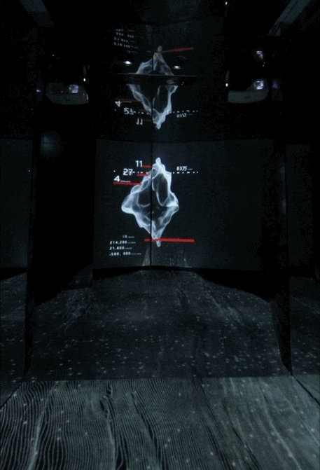 3臺Vivitek(麗訊) RU70953進(jìn)行三面?zhèn)韧?,搭配?nèi)部嵌入交互感應(yīng)系統(tǒng),以“仿生雕塑”為核心概念進(jìn)行深入延伸,同時對生物結(jié)構(gòu)進(jìn)行抽象化的提取和重塑,將其形態(tài)配合音樂節(jié)奏進(jìn)行“呼吸”與演變。