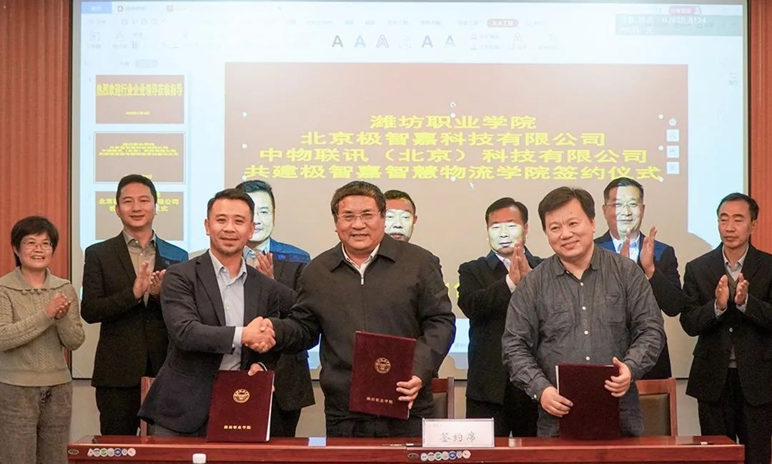 “極智嘉智慧物流產(chǎn)業(yè)學(xué)院”合作簽約儀式于11月在濰坊職業(yè)學(xué)院濱海校區(qū)舉行。中國物流與采購聯(lián)合會(huì)副會(huì)長、教育部物流行指委主任任豪祥,中國物流與采購聯(lián)合會(huì)副秘書長、教育部物流行指委秘書長郭肇明,濰坊職業(yè)學(xué)院院長王家愛、副院長賀志強(qiáng),中物聯(lián)訊(北京)科技有限公司總裁何斌、副總裁魏嘉,極智嘉中國區(qū)高級(jí)副總裁劉征、AI研究院院長譚文哲等出席儀式。
