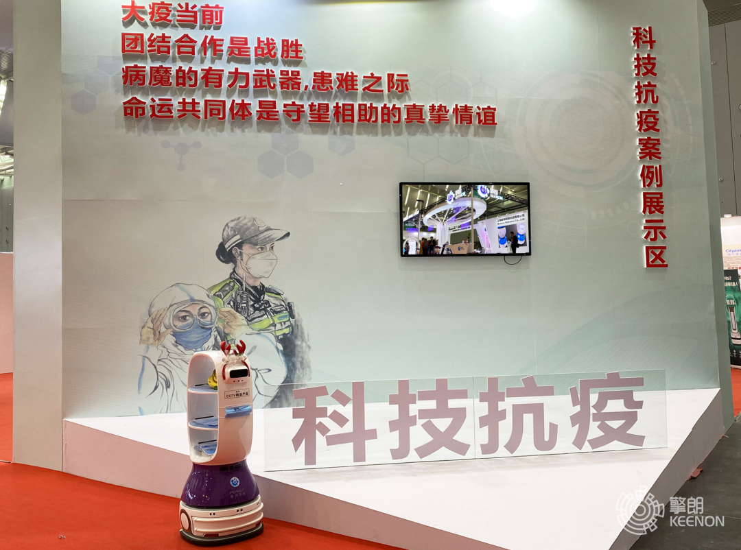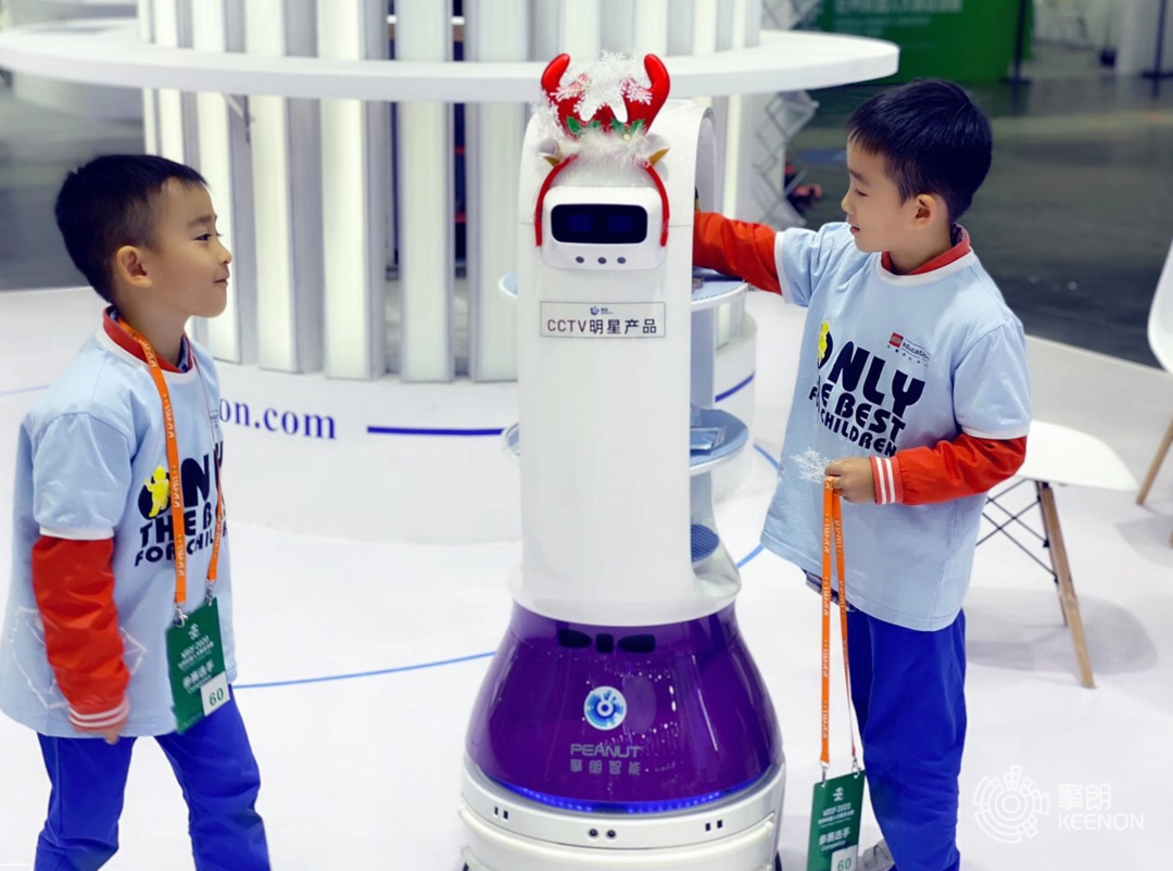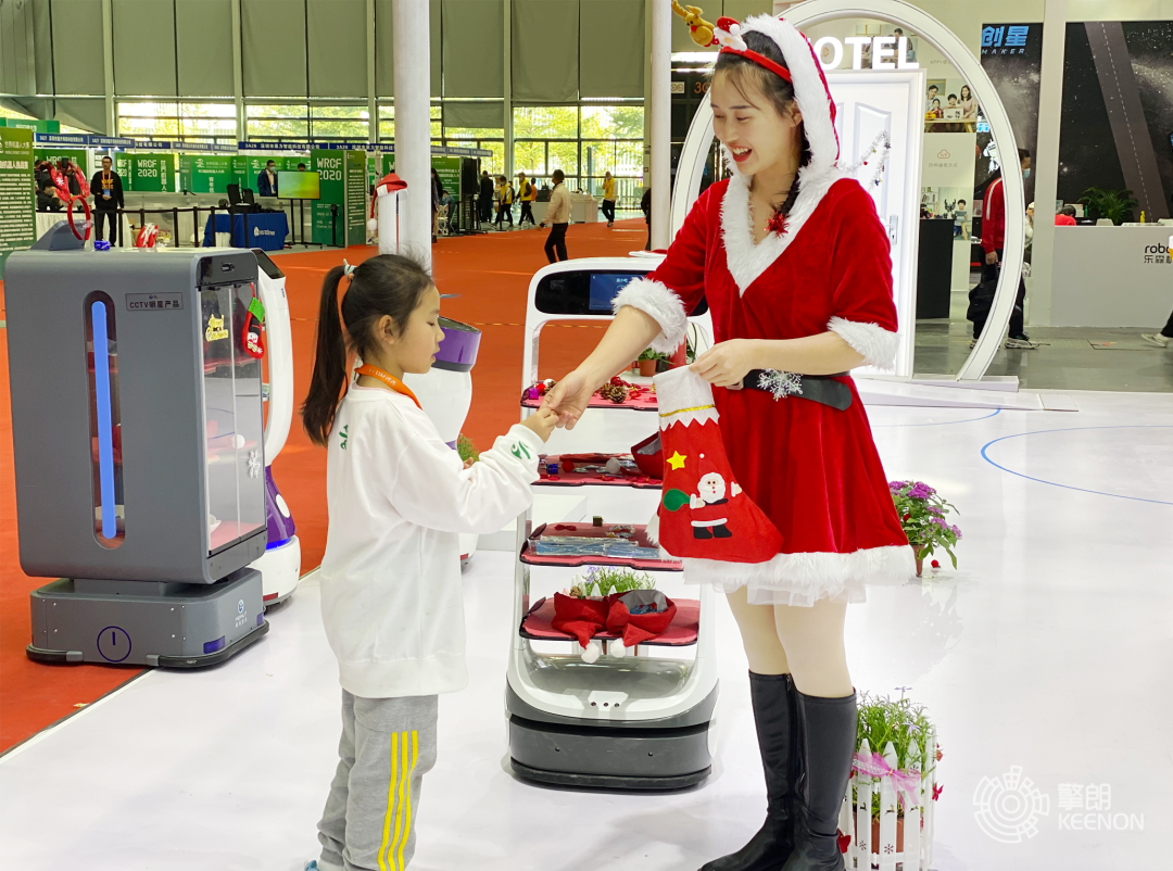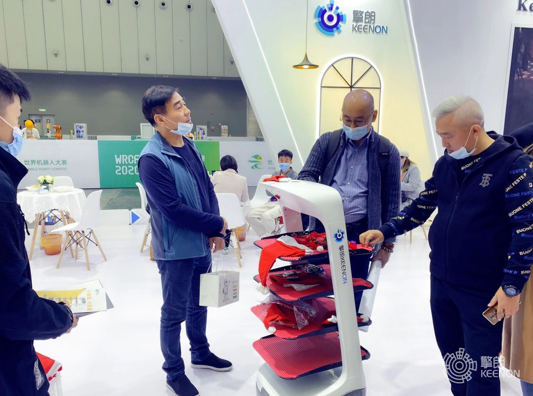 接待區(qū)、點餐區(qū)、收臺區(qū)、酒店區(qū)、無人貨柜……擎朗智能在此次博覽會現(xiàn)場模擬實際餐飲及酒店場景。觀眾進入“KEENON智慧餐廳”,可以近距離體驗機器人領(lǐng)位、機器人點餐、機器人送餐、機器人配送物品、甚至是機器人回收餐具,支持垃圾分類等全流程智慧服務(wù),當然,你也可以“皮”一下,故意阻擋機器人們的行駛路線,看看它是否真的“智能”。