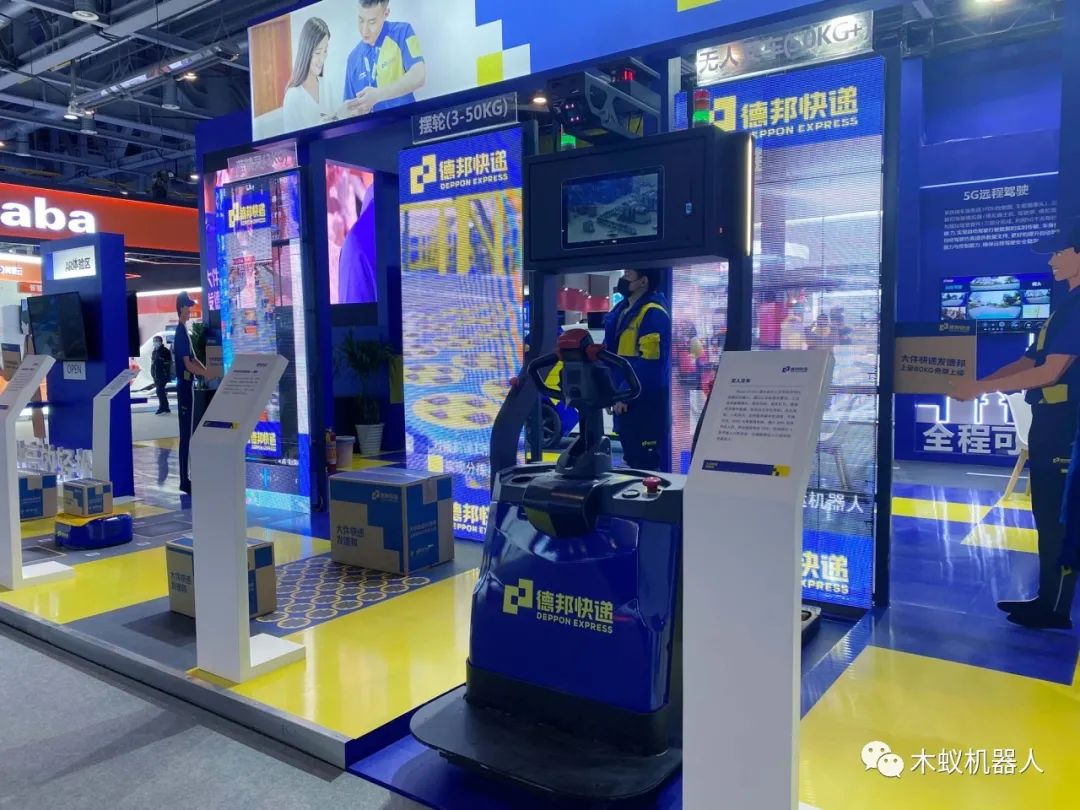 木蟻作為德邦快遞的場(chǎng)景戰(zhàn)略合作伙伴之一,受德邦快遞邀約,“定制款”的無(wú)人叉車(chē)也亮相本次博覽會(huì)。