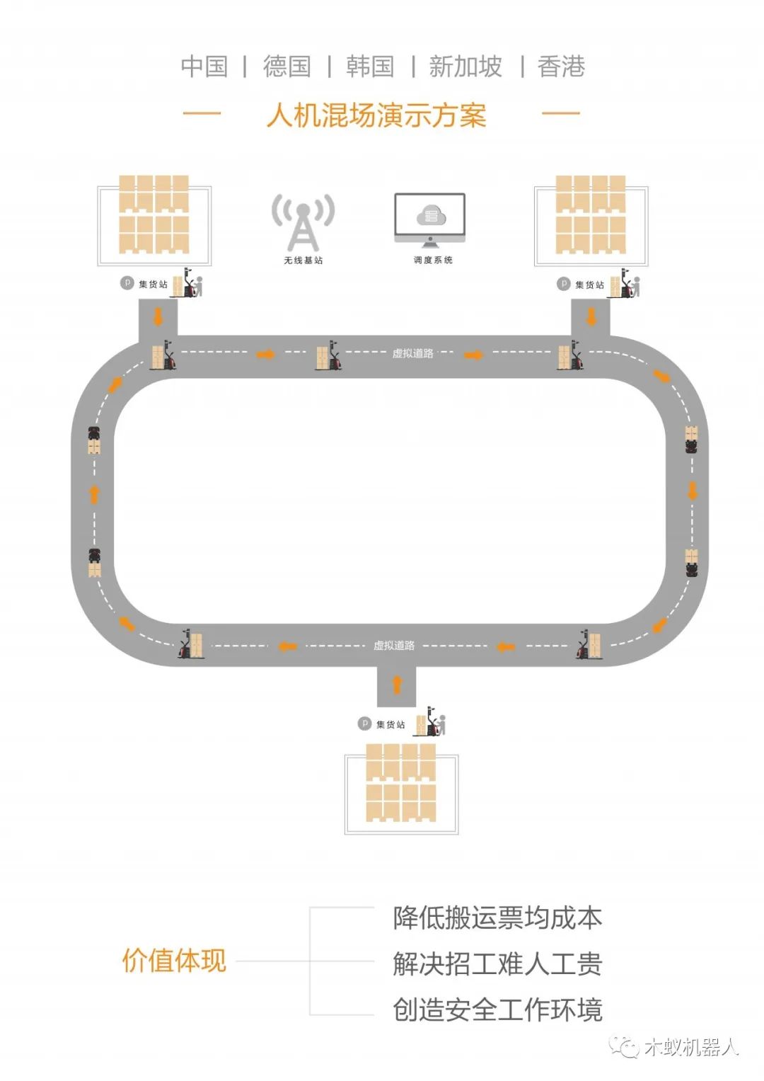 現(xiàn)場(chǎng)展出的此款無(wú)人叉車(chē),是木蟻已經(jīng)在德邦快遞現(xiàn)場(chǎng)實(shí)施的典型的并且已經(jīng)成熟的人機(jī)混場(chǎng)案例。