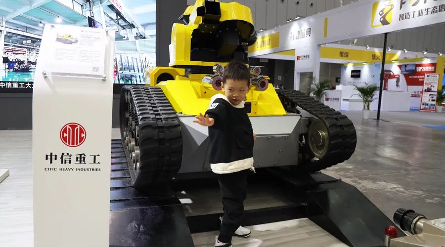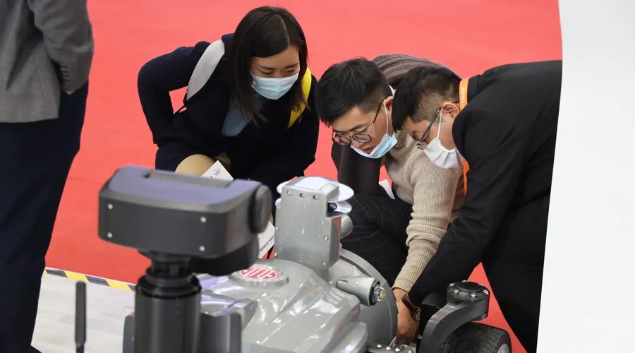 ▲ 輪式巡檢機(jī)器人吸引眾多駐足者頻頻詢問(wèn)其性能特點(diǎn)。