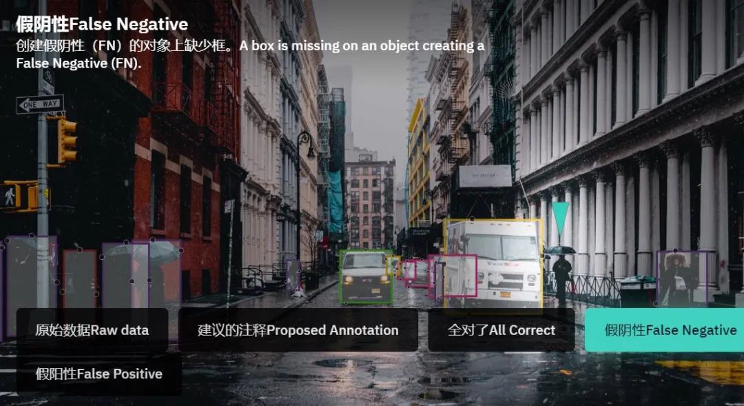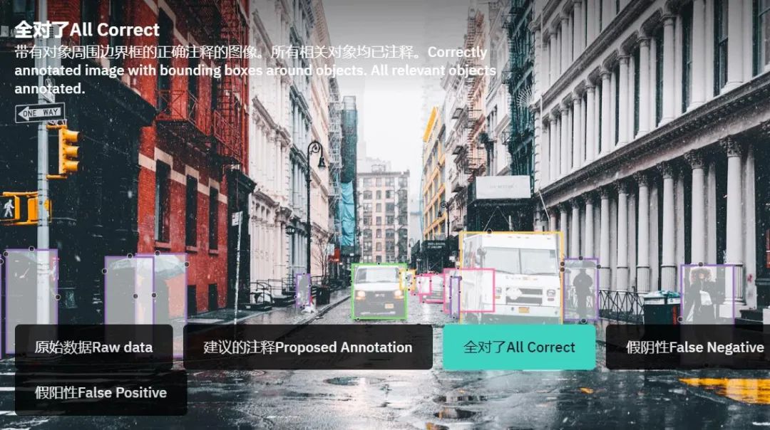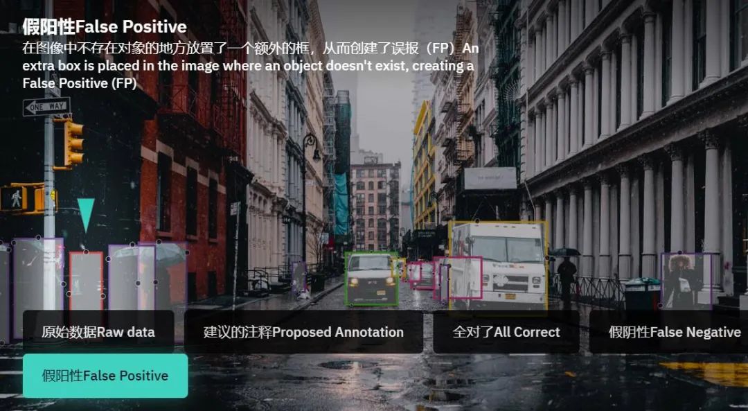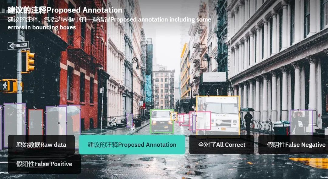量化注釋質(zhì)量的一種方法是注釋數(shù)據(jù)集的精度和召回率??紤]一下標(biāo)注的類型,其中攝像機圖像中的一個對象(如接近的車輛)由一個邊界框標(biāo)注。在對此類數(shù)據(jù)集的質(zhì)量進行推理時,有兩個重要的問題(i)感興趣的對象是否已由邊界框正確標(biāo)注,以及(ii)邊界框是否實際上包含感興趣的對象。