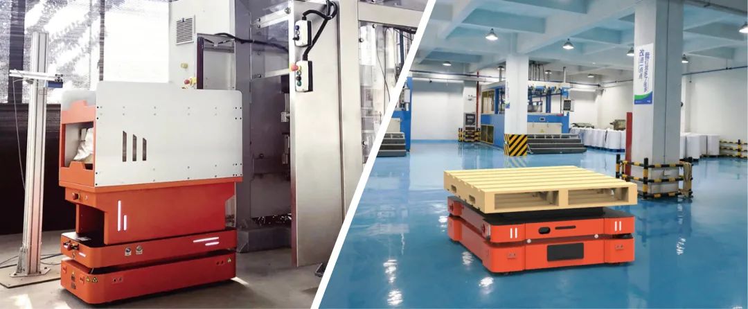 在引入了棧板搬運AMR和輥筒接駁AMR之后,原先負責(zé)搬運棧板的叉車只需要在倉庫內(nèi)活動,不需要進入生產(chǎn)區(qū)域,AMR在倉庫和叉車進行協(xié)作,之后獨立完成產(chǎn)線間的物流任務(wù),完成滿載棧板的運送和空置棧板的回收;而在輕載貨品的作業(yè)環(huán)節(jié)中,根據(jù)生產(chǎn)設(shè)備定制的輥筒接駁AMR,能直接和生產(chǎn)設(shè)備相對接,直接改良了原先工人推拉料車,再人工取貨上下料的低效作業(yè)模式。雙工位的輥筒設(shè)計,能夠同時實現(xiàn)備料上線和料箱回收,大大提升了作業(yè)效率。引入AMR之后,可柔性打通倉庫到生產(chǎn)線、生產(chǎn)線之間的物流,實現(xiàn)物料的自動化運輸。