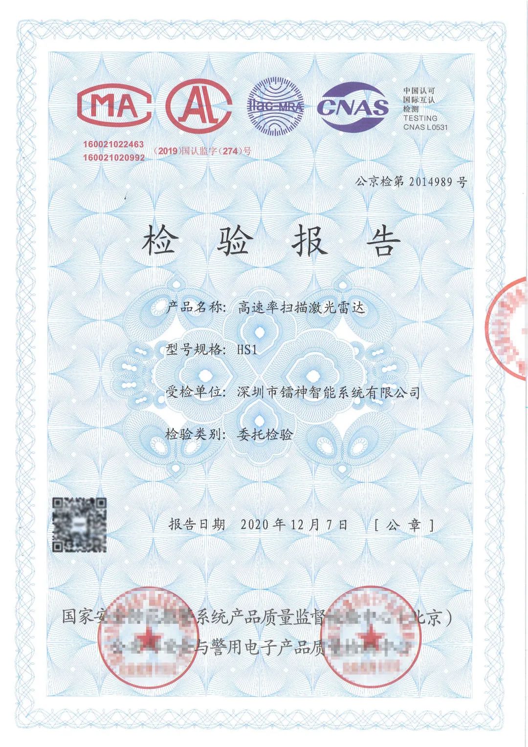 近日,鐳神智能自主研發(fā)的HS1高速掃描激光雷達(dá)憑卓越的性能和高可靠性,成為中國首個通過公安部產(chǎn)品質(zhì)檢認(rèn)證的激光雷達(dá)!檢驗報告HS1高速掃描激光雷達(dá)是鐳神智能今年為智慧交通應(yīng)用專程獻(xiàn)上的一份...